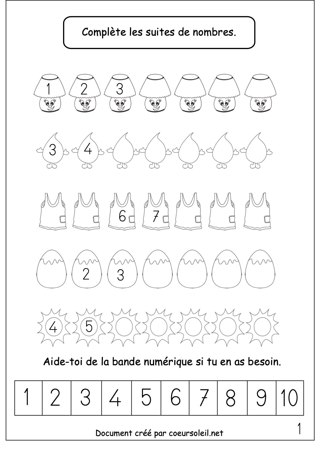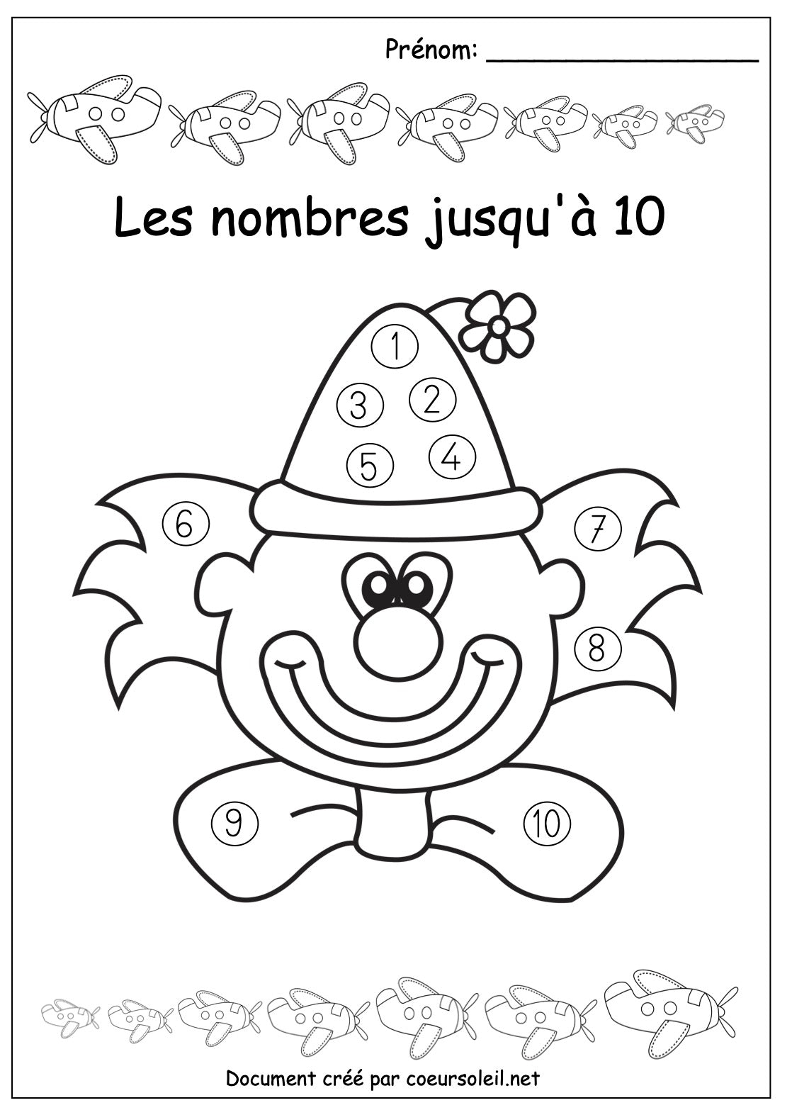 Dossier de maths qui exerce les nombres de 1 à 10 au moyen d'exercices ludiques.